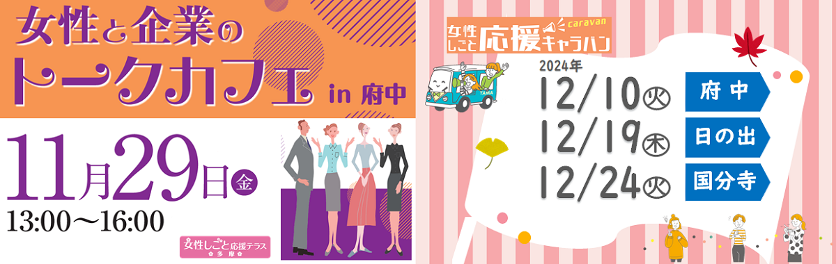 【12月開催分】 女性しごと応援キャラバン(立川、府中、日の出、国分寺)で開催します!