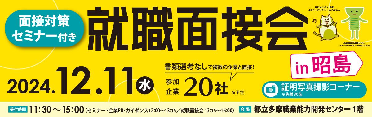 ◆◆2024年11月開催セミナーのお知らせ!◆◆- ★受付10/15より開始★12/11(水)開催!就職面接会in昭島